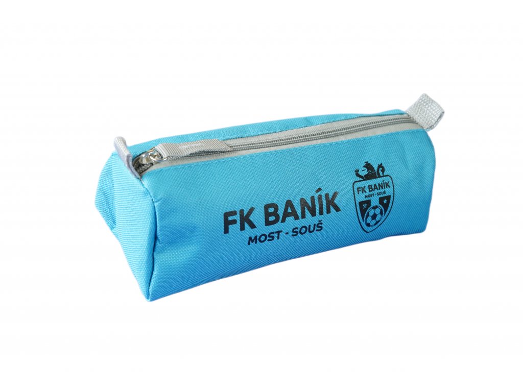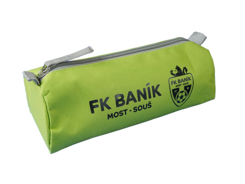 Textilní penál na tužky, zavírání na zip, barva zelená nebo modrá, černý potisk názvu klubu a loga